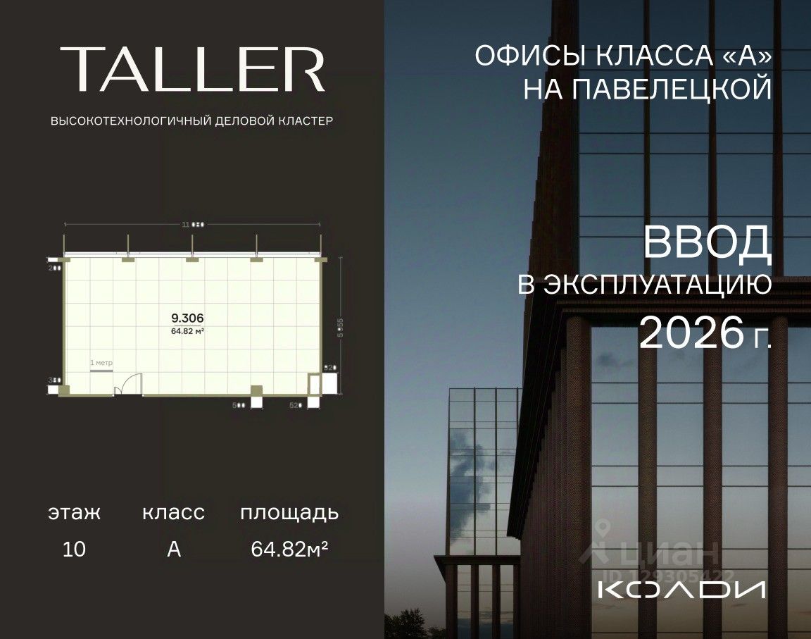 Комфортабельный офис площадью 64.82 м² на 10 этаже инновационного делового центра TALLER.