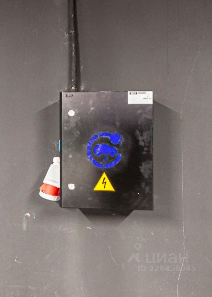 Машиноместо расположено недалеко от лифта, у стены, установлено зарядное устройство для электрокара.