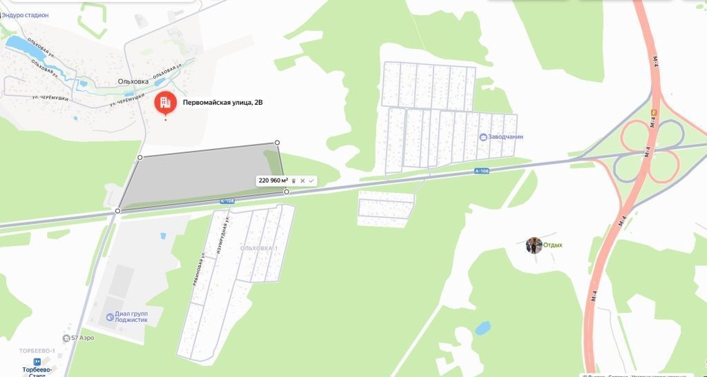 Два заезда на участок с А-108 и с улицы Первомайской.