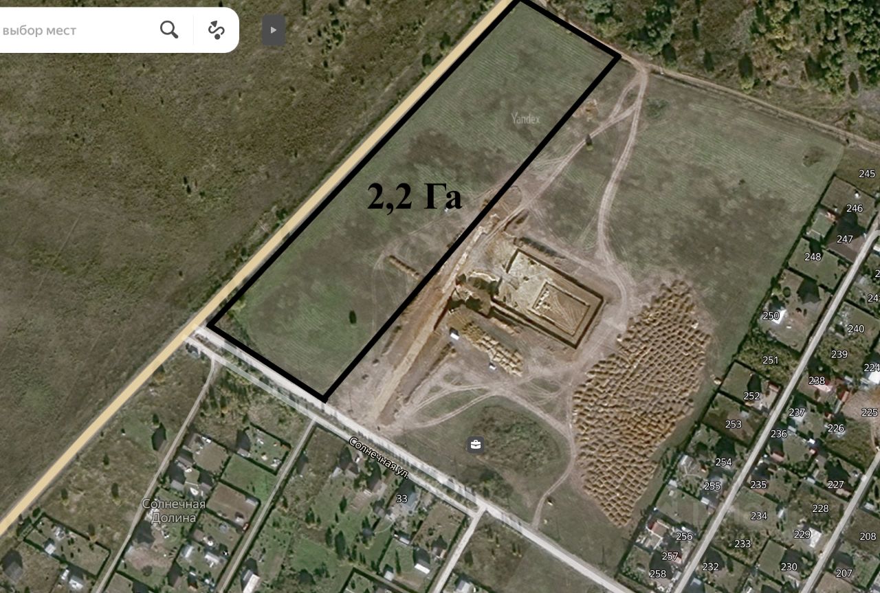 Земельный участок площадью 2,2 Га, вдоль дороги М5Урал-Рыболово-Михеево-М5Урал .