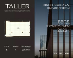 Комфортабельное помещение площадью 209.44 м² на 8 этаже инновационного делового центра TALLER.
