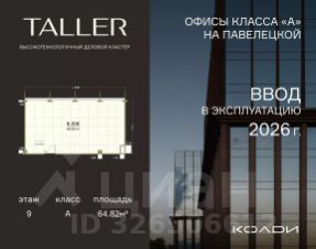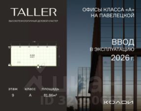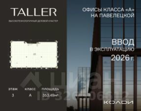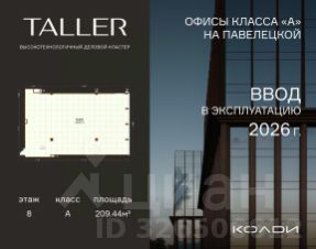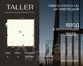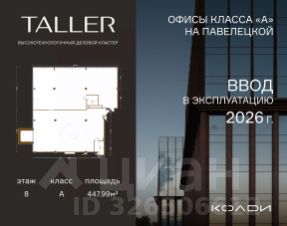 Бизнес-пространство TALLER расположено в центре Павелецкого делового района. Оно станет первым за 14 лет офисным проектом А класса в данной локации, что делает его уникальным как в целях покупки для собственного использования, так и для инвестиций. Исключительность проекта подчеркивает и гармоничное сочетание современного экстерьера с богатым архитектурным наследием прошлого: один из фасадов делового центра украшает знаковый элемент района - воссозданная по исходным чертежам водонапорная башня, некогда венчавшая ведущее промышленное предприятие XX столетия. Хорошая транспортная доступность TALLER обеспечена близостью к Садовому кольцу (1,2 км), метро "Павелецкая" и Павелецкому ж/д вокзалу, откуда регулярно курсируют экспрессы до международного аэропорта Домодедово.