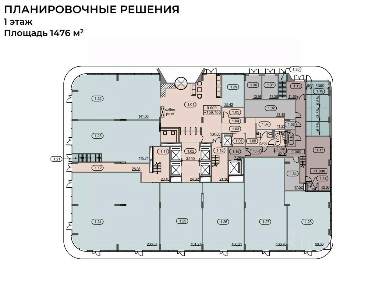 Планировка: смешанная. Под чистовую отделку. Терраса/балкон. Тип налогообложения: С НДС. Кол-во парковочных мест: 63.