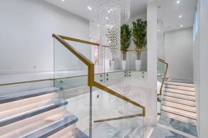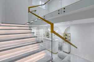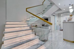 монолитная лестница со стеклянным ограждением;