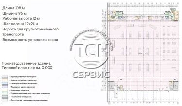 Центральные коммуникации, рабочая высота потолка 12м, шаг колонн 12х24, доковые ворота на высоте 1.2м, одни доковые ворота на 700 кв.м., электричество 200 кВт с возможностью увеличения, полы антипыль, нагрузка на пол 10т/1м2, грузовой мезонин с нагрузкой 3т/1м2.
