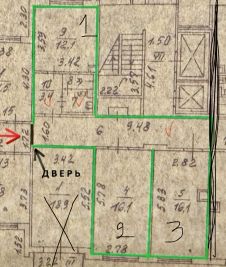 Между помещениями-общий коридор (15м²) и санузел (4м²), изолированные за вашей входной дверью, т.е. в вашем распоряжении дополнительно 19м².