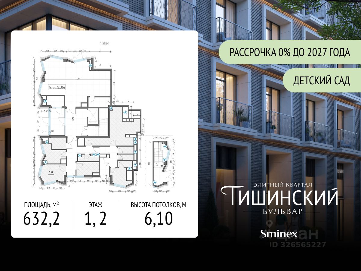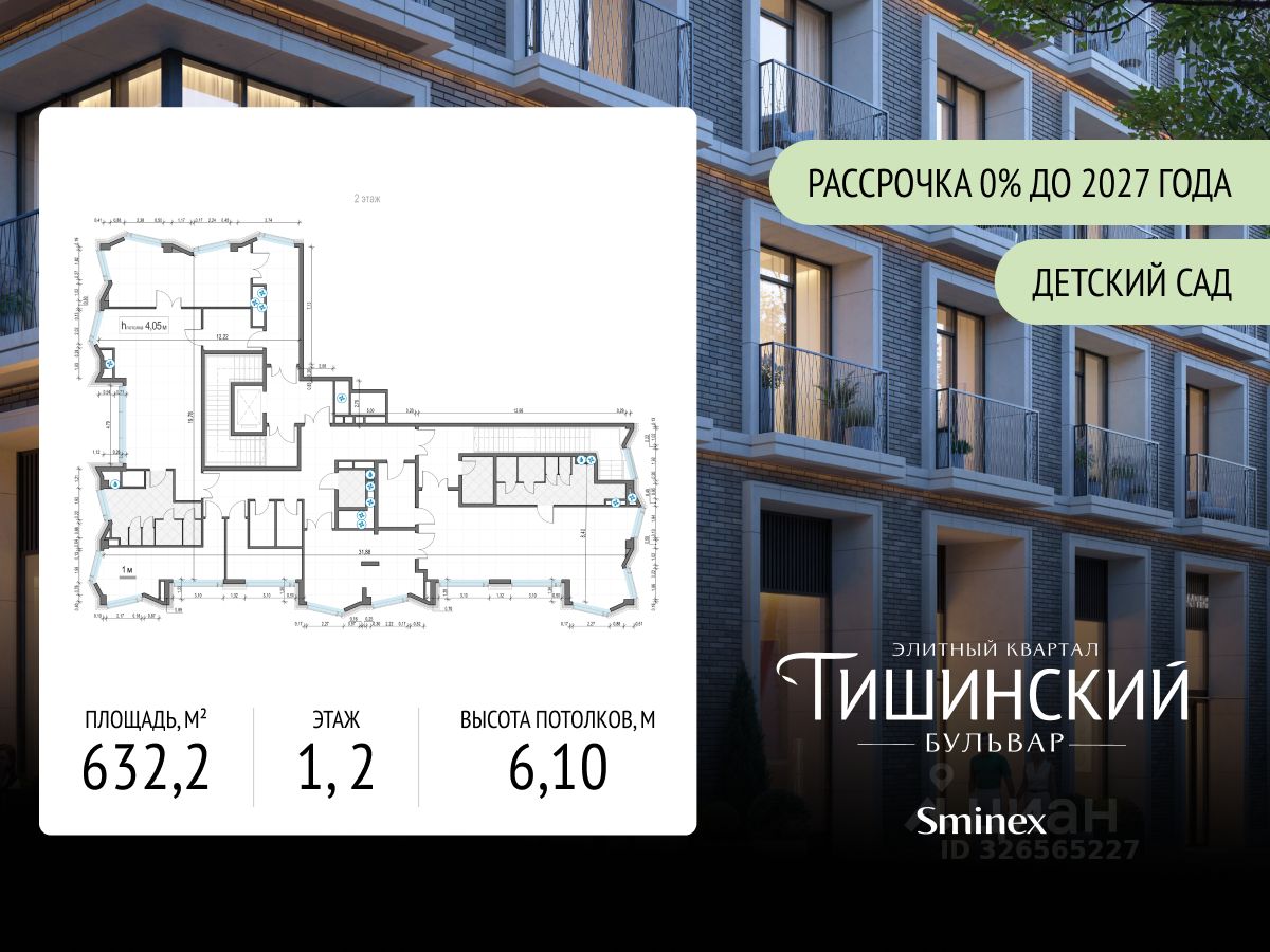Продаётся помещение для размещения детского сада площадью 632,2 кв. м в элитном квартале "Тишинский бульвар".