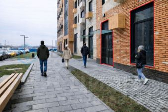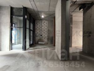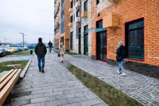 Торговое помещение в новом готовом доме. Рядом оживлённая улица и пешеходные тротуары.