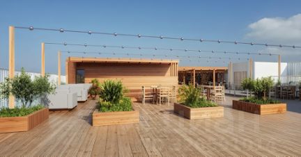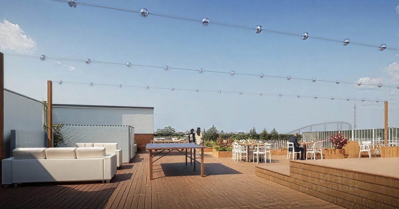 На 1м этаже будет ритейл с кафе и услугами. На крыше раскинется общедоступная Террасой с обзорным видом на город и парк. В наличии 4 лифта (1 грузовой и 3 пассажирских). До 6го Этажа есть возможность заезжать на авто, удобно для подгрузки/разгрузки. Есть наземный паркинг.