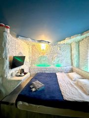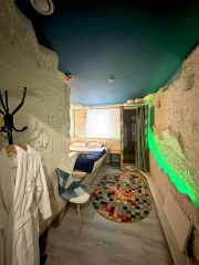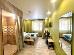 - 7 номеров: 1 семейный люкс (с мини-кухней, с двумя отдельными спальнями, туалетом и душем — подходит для 4 человек), 3 номера с личными санузлами. Остальные номера с туалетов на этаже.