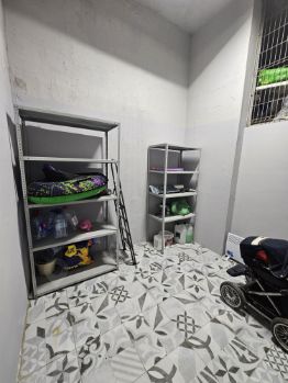 Кладовка продается со стеллажами: заходите и сразу размещайте свои вещи.