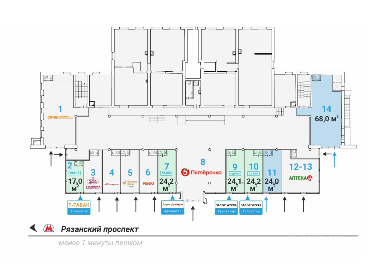 Объект: (так же в здании доступны объекты площадью от 17 до 68 кв.м)
