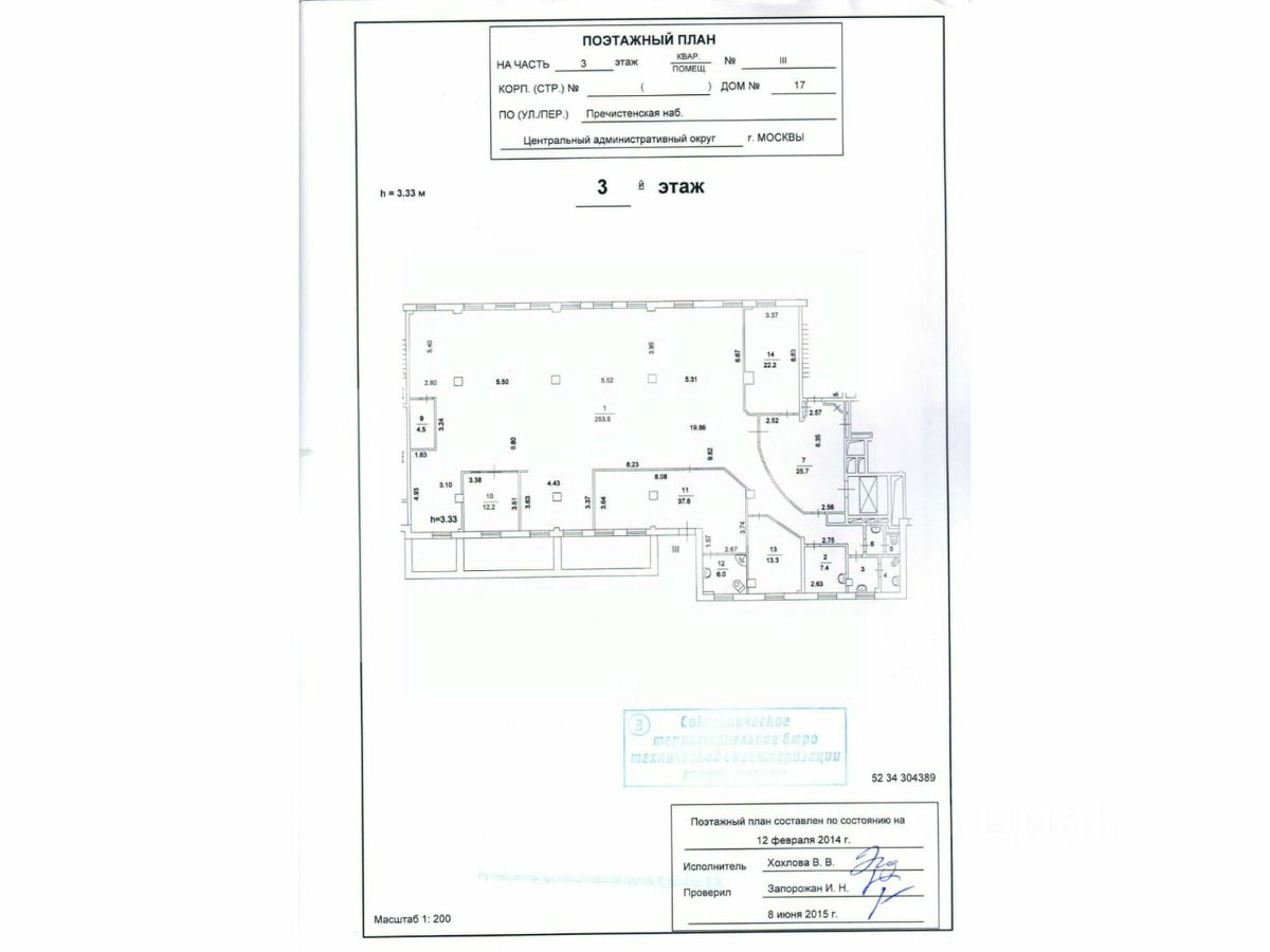 - Высота потолков: 3.33 м.