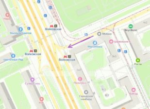 5 метров от вестибюля станции метро "Войковская";