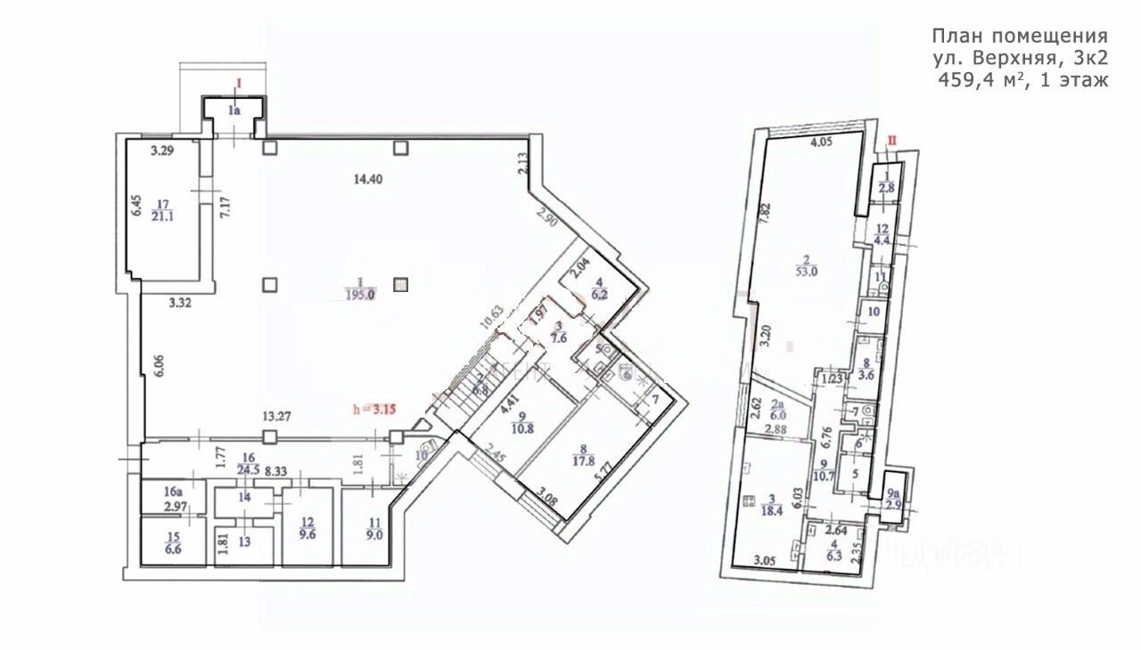 -высота потолков: от 2.7 м до 3.15 м.