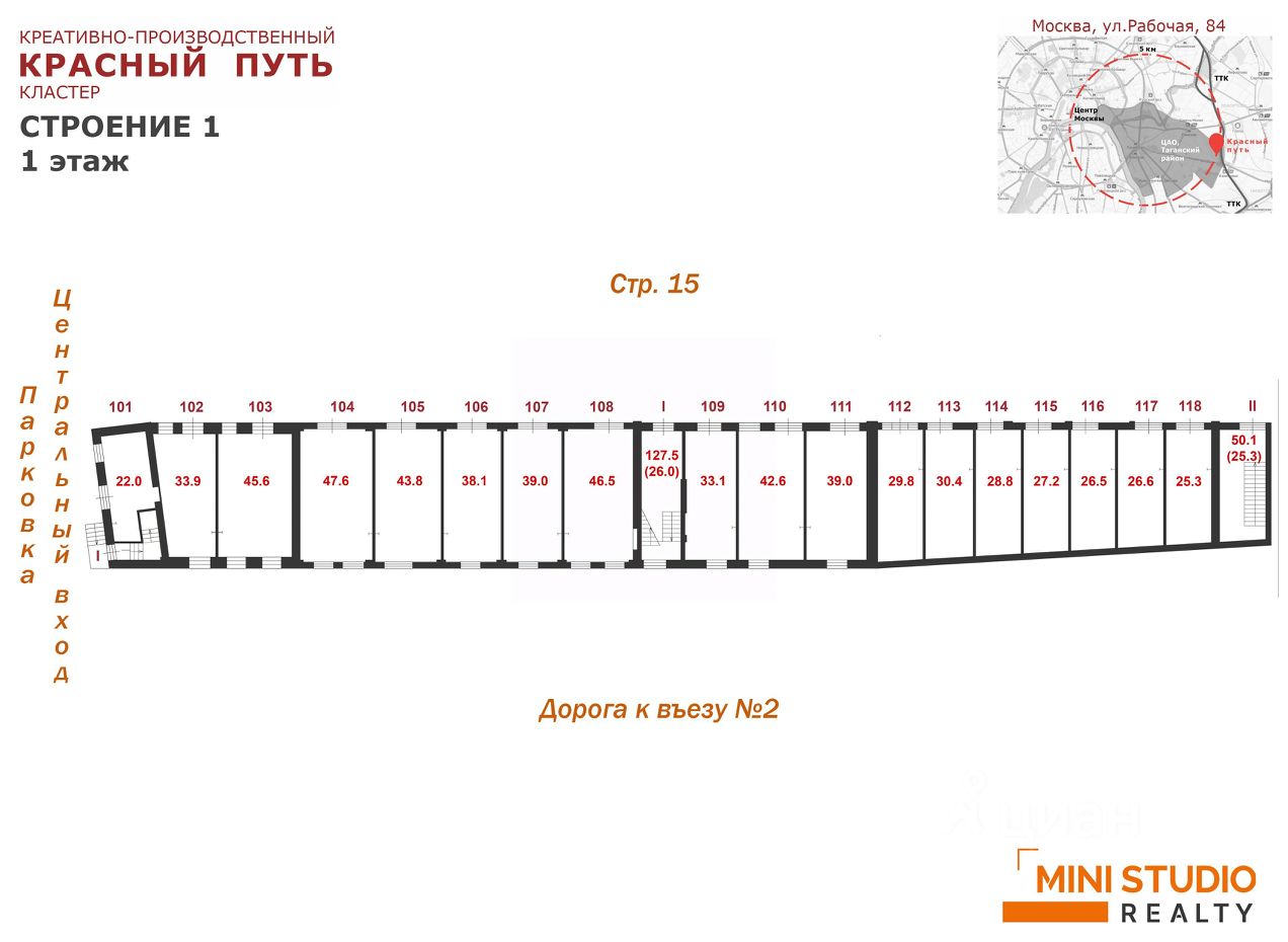 Помещение с отдельным входом (лот 106 на плане) располагается на первом этаже в строении 1.