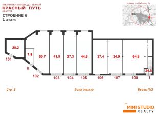 Помещение с отдельным входом (лот 106 на плане) располагается на первом этаже в строении 6.