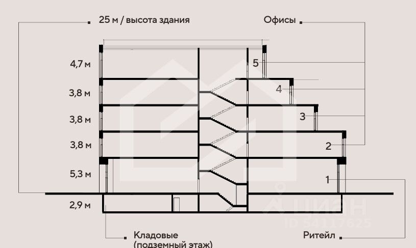 - Высота потолков - от 3.8 м до 4.7 м.