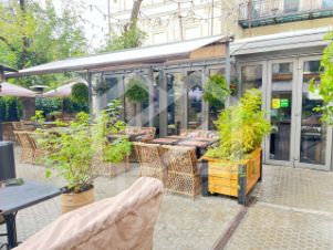 -собственная парковка и ресторанный дворик;