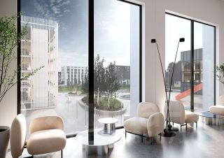 Планировки офисных этажей соответствуют требованиям функционального офиса - глубина помещений 8-10 метров.