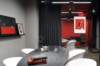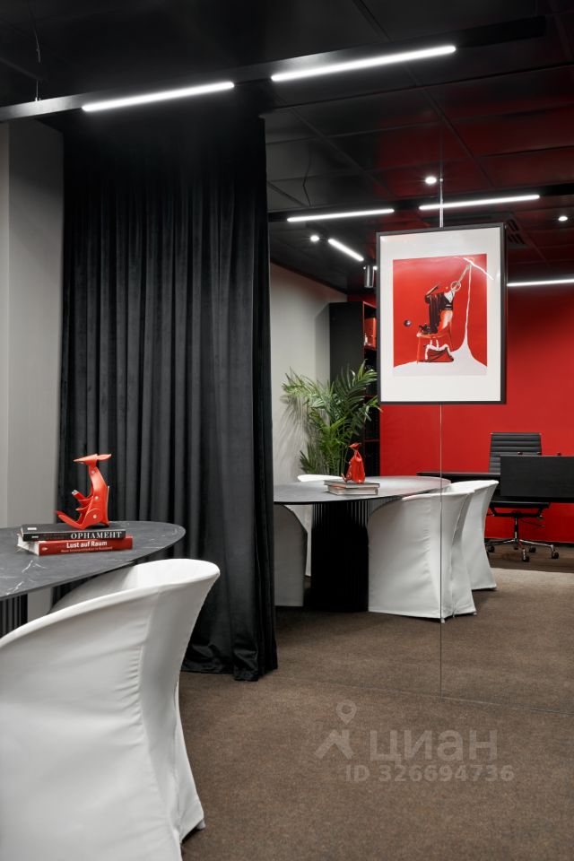 Отдаем с мебелью, но в текущем виде заменен директорский стол на 2 офисных, а также стулья без белых чехлов, более офисные. Остается офисное кресло, 2 офисных стола, 4 стула, большой коммунальный стол, 2 стеллажа для документов, двусторонний шкаф: с одной стороны хоз. уголок и минибар, с другой — шкаф для одежды, телевизор. В помещении центральная система кондиционирования, приточно-вытяжная система вентиляции.