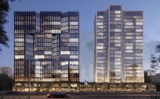 Новый бизнес-центр представляет собой комбинацию из трех пространственных элементов. Единый стилобат выступает подиумом для двух расположенных на нем башен-скульптур или арт-объектов. Каждое здание формирует собственный стилистический и пластический язык.