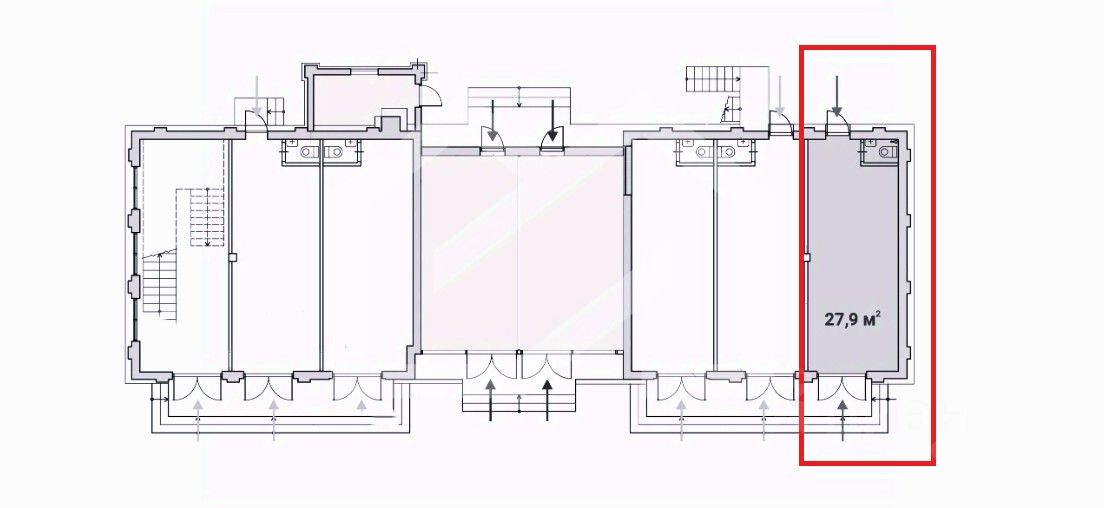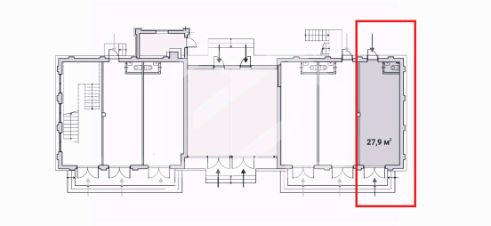 687065-s . Предлагаем к приобретению торговое помещение, площадью 27.9 кв. м., расположенное на первом этаже 2-этажного административного здания. Без комиссии для покупателя.