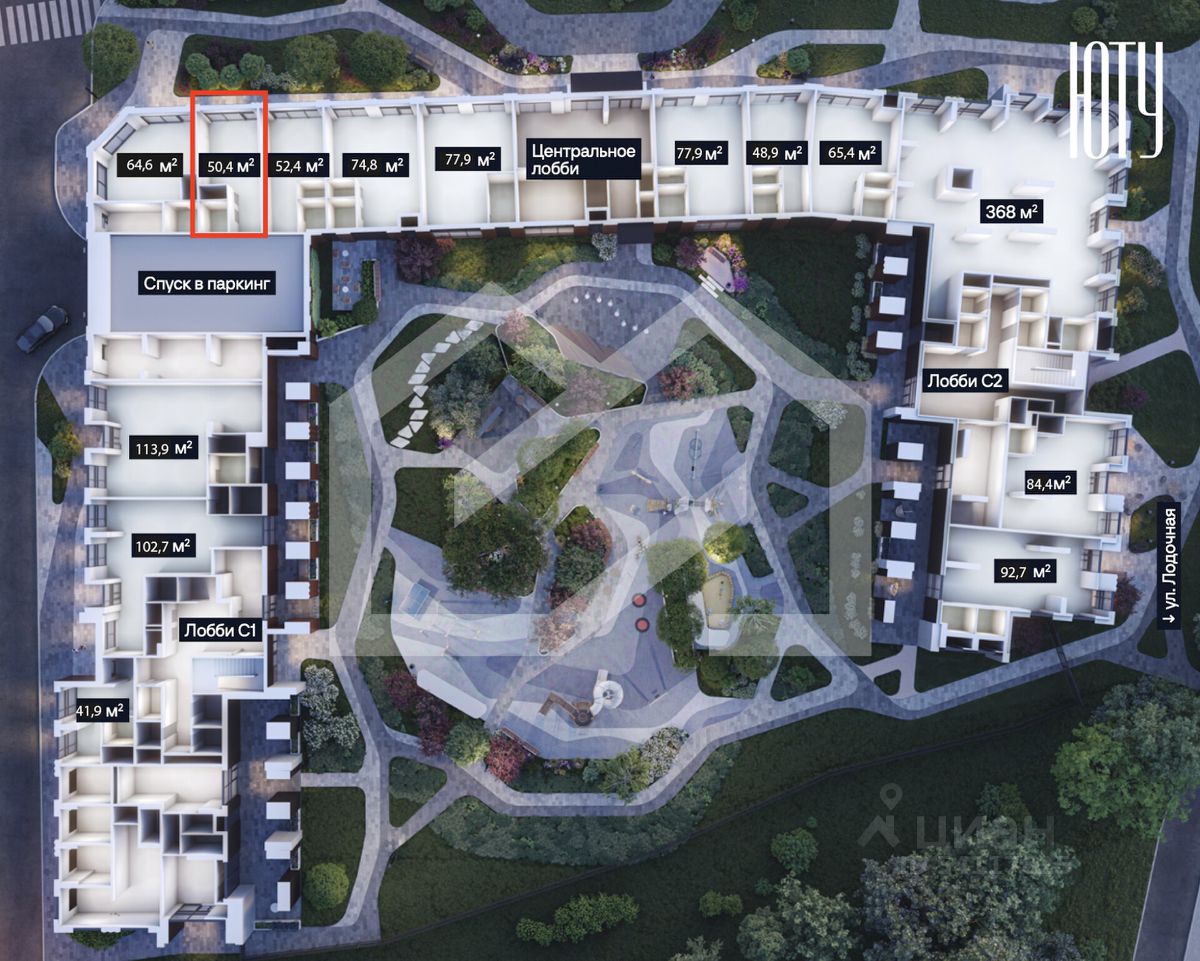 1000556-s . Предлагаем помещение свободного назначения формата street-retail в ЖК "ЮТУ", площадью 50.4 кв. м, расположенное на первом этаже 25-этажного жилого дома. Без комиссии для покупателя.