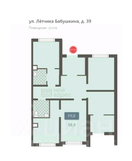 Коммерческое помещение площадью 111 м², расположено по адресу: г. Москва, улица Лётчика Бабушкина, 39, помещение 2/1 (VI), район Бабушкинский. Объект занимает 1 этаж в здании с этажностью 19 этажей. Помещение с отделкой, свободного назначения, имеет отдельный вход.