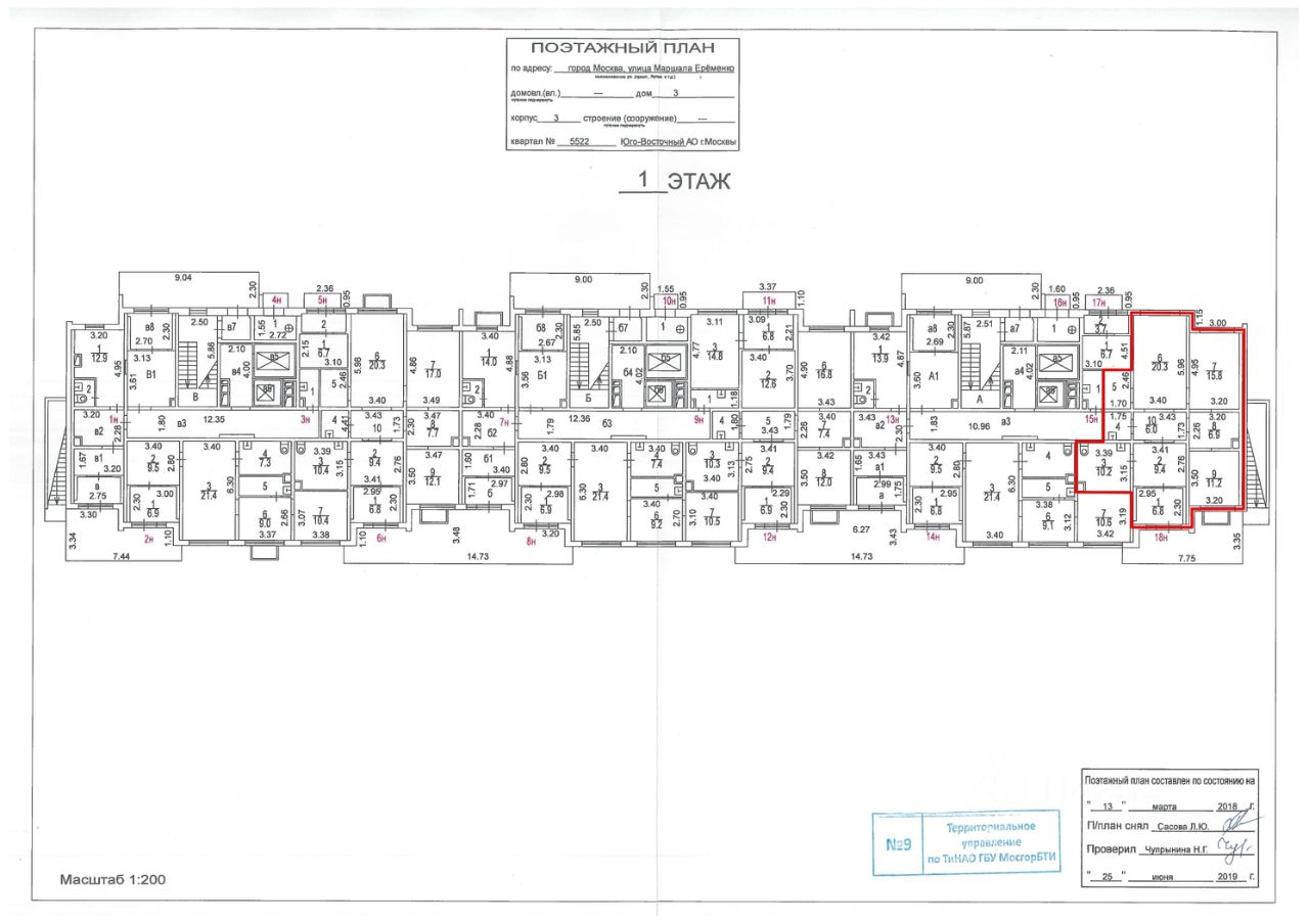 Коммерческое помещение площадью 94 м², расположено по адресу: г. Москва, улица Маршала Ерёменко, 3к3, помещение 18Н, район Некрасовка. Объект занимает 1 этаж в здании с этажностью 17 этажей. Помещение требует ремонта, свободного назначения, имеет отдельный вход.