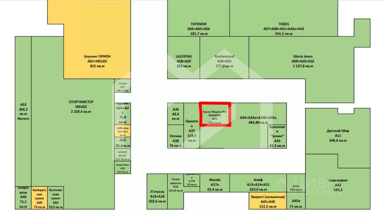 1119643. Предлагаем помещение свободного назначения с арендатором Кухни Мария (ФК Мебель) в МФК "Митино Парк", площадью 79.6 кв. м, расположенное на первом этаже 3-этажного здания. Без комиссии для покупателя.