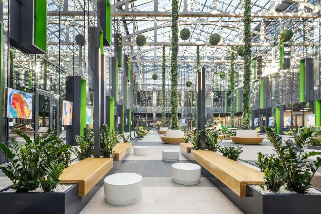 Внутри бизнес-центра развитая инфраструктура - на нижних этажах работают кафе, рестораны, столовая и магазины. Всё для комфортного рабочего дня: обед без выхода на улицу, кофе с собой, деловые встречи в лаунж-зонах.