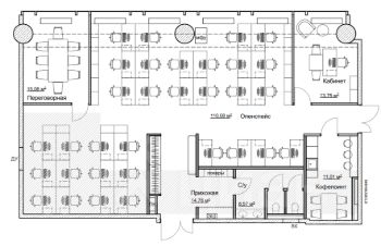 - Планировка: опенспейс, переговорная, кабинет руководителя