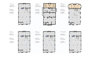 Высота потолков от 3.7 м до 4.8 м.