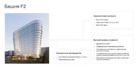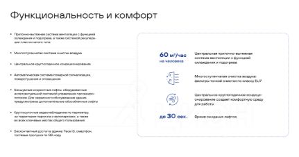 Бизнес-центр оснащен премиальными инженерными системами, способствующими созданию качественной среды для работы. Гибкие планировочные решения и панорамное остекление обеспечат высокую адаптивность офисных пространств и качественную инсоляцию.
