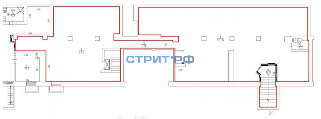 планировка правильной прямоугольной формы (два зала)