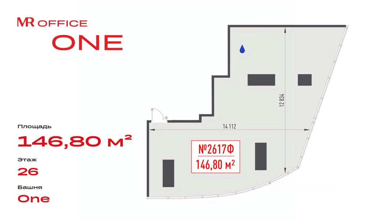 Продается офисное помещение 146.80 м² на 26 этаже в новом небоскребе класса Prime — БЦ ONE от MR Office.