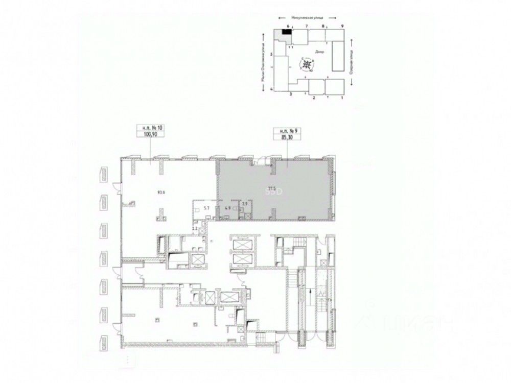 1 этаж, 1 линия. Общая площадь 85.3 кв.м.