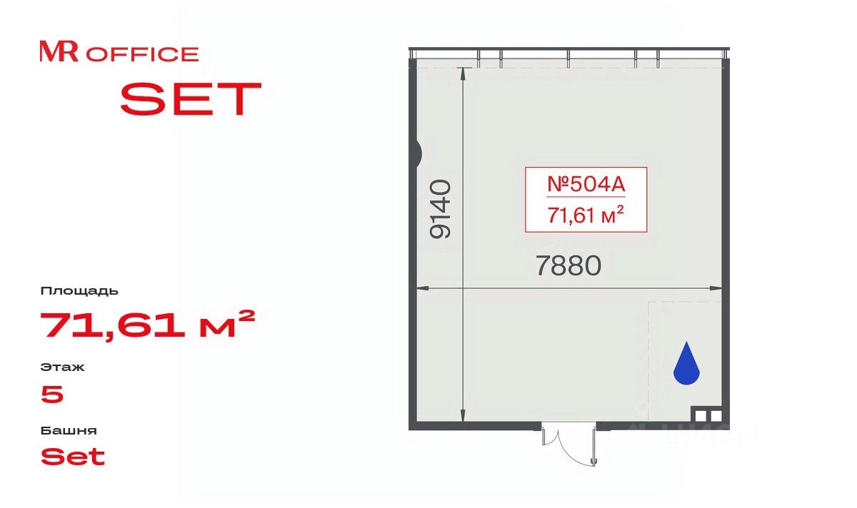 Продаётся офисное помещение площадью 71.61 м² на 5 этаже в новом бизнес-центре SET в башне K1.