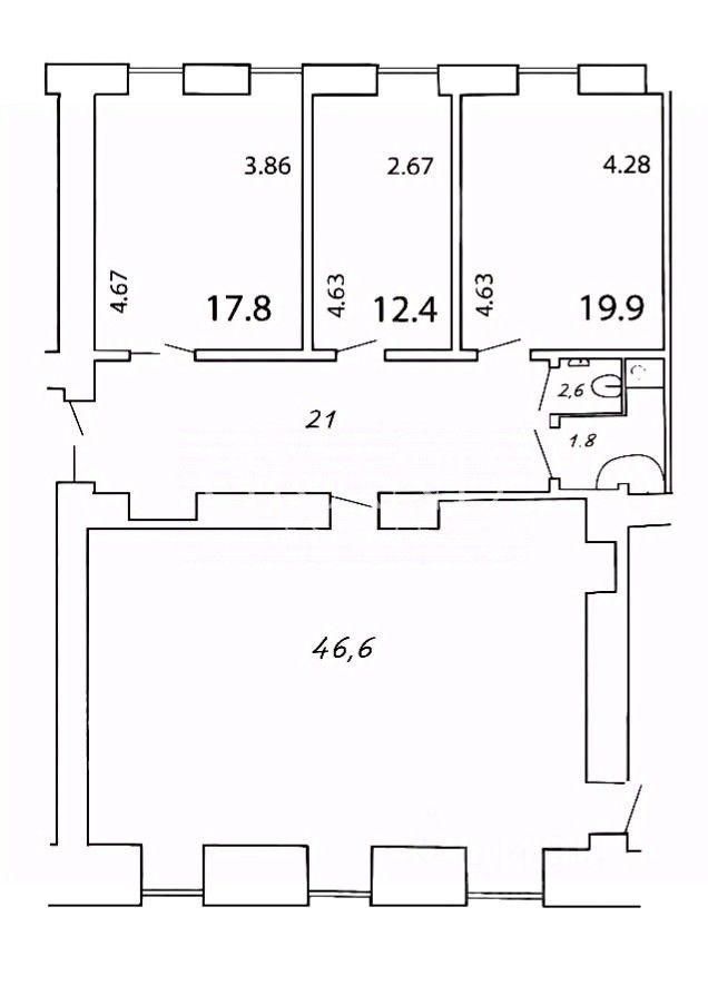 Помещение разделено на 5 комнат с качественным ремонтом.