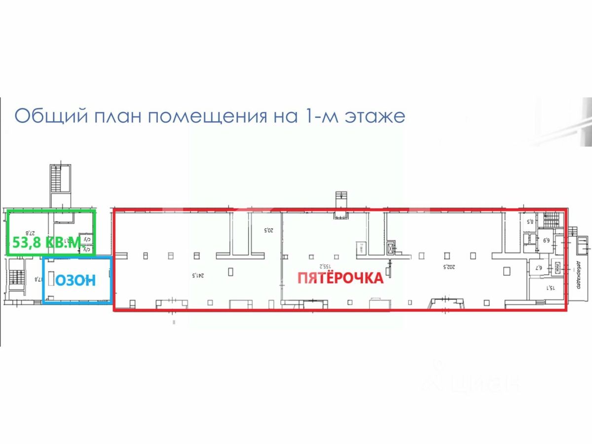 643332-gab . Предлагаем помещение свободного назначения формата Street Retail с арендаторами супермаркет "Пятёрочка" и пункт выдачи Ozon, площадью 1 537,3 кв. м., расположенное на первом этаже и в подвале жилого дома. Без комиссии для покупателя.