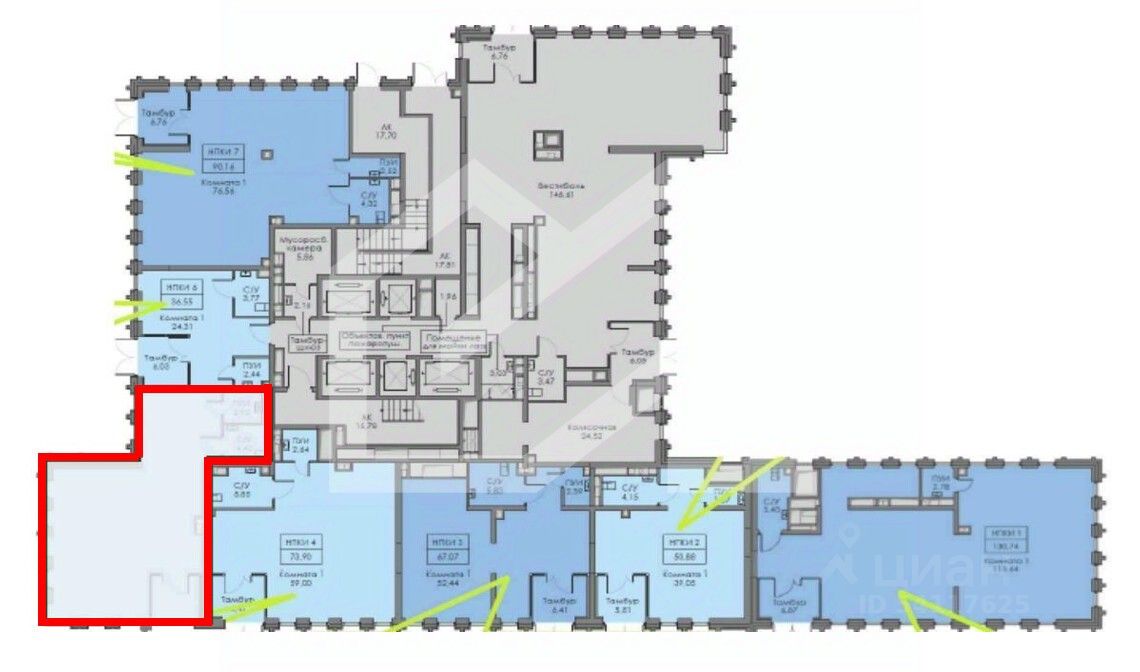 -первая линия, самое просматриваемое помещение в ЖК;