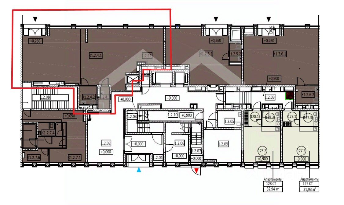 1050907-f . Предлагаем к приобретению помещение свободного назначения формата Street Retail, площадью 128,63 кв. м., расположенное на первом этаже жилого дома в престижном ЖК "Insider". Корпус 1. Секция 2. Без комиссии для покупателя.