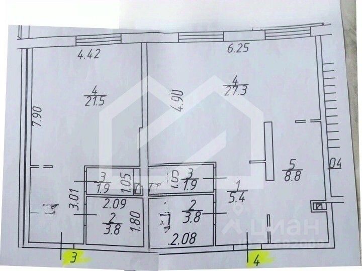 -высота потолков: 2.57 м.