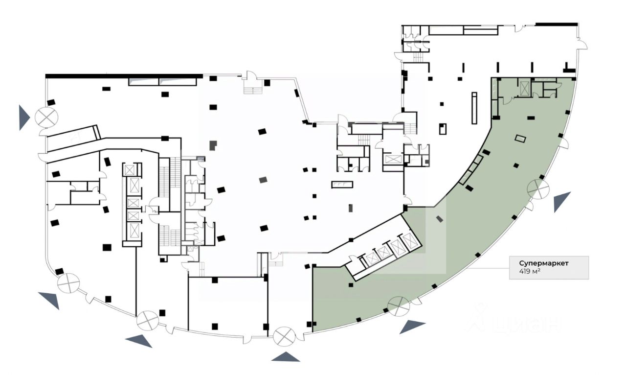 1071037-f . Предлагаем к приобретению помещение под супермаркет формата Street Retail, площадью 419 кв. м., расположенное на первом этаже в новом строящемся бизнес-центре "Сити Строгино". Без комиссии для покупателя.