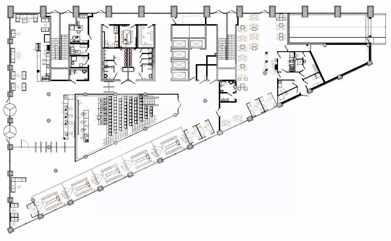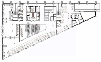 - Планировка открытая: площадь типового этажа - 1 688 кв. м., 1 426 рабочих мест. 10 переговорных комнат и конференц-зал на 105 человек.