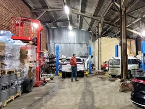 Отдельно стоящее 1-этажное здание, разделено на боксы, год постpoйки 1958г. Материал стен кирпич, железобетонные перекрытия, подвала нет. Высота потолков 7 м, ворота на уровне "0".