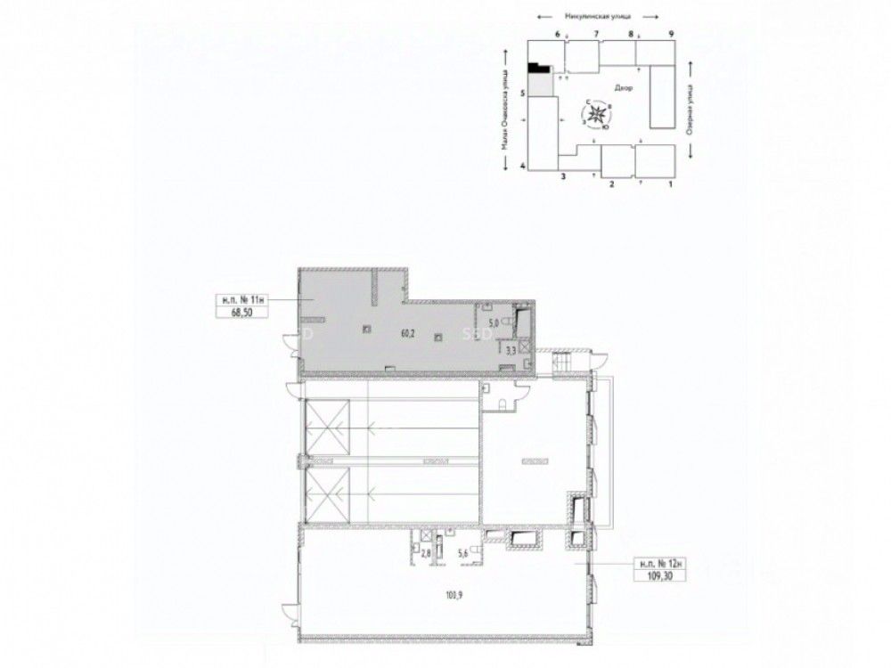 1 этаж, 1 линия. Общая площадь 68.5 кв.м.