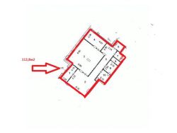 Площадь 112.8 м²., отдельный вход, высота потолков 3,7м., 2 уровня, витринное остекление, без отделки.
