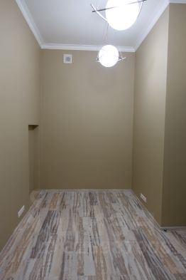 Помещение не требует значительных дополнительных вложений. Стены окрашены. В зоне ресепшен, санузле и кухне уложена плитка. В кабинетах используется ламинированное напольное покрытие повышенной износостойкости. Интерьерное освещение представлено дорогими люстрами и точечными светильниками. Все помещения оснащены кондиционерами марки Mitsubishi.
